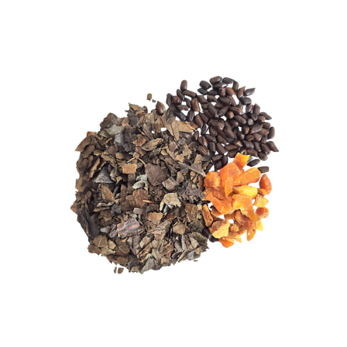 健康茶でおなじみの杜仲茶に腎を補うハコシ(ほつこし)、滋養ドリンクに使用される黄精をブレンドしました。中国ではよく使用されるハコシはマメ科の植物。果実の種子で爽やかな香りがあります。黄精(ナルコユリ)の根茎。